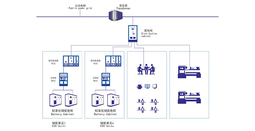 我司MW級(jí)儲(chǔ)能系統(tǒng)采用先進(jìn)鋰離子電池(高能量密度、大充放電倍率、寬溫度范圍、長(zhǎng)循環(huán)壽命)、高效率能量變換器(PCS)、智慧能量管理系統(tǒng)(EMS)作為核心部件;通過高精度傳感器對(duì)負(fù)荷進(jìn)行實(shí)時(shí)監(jiān)測(cè),采用功率實(shí)時(shí)補(bǔ)償與最優(yōu)節(jié)能用電綜合策略控制算法,實(shí)現(xiàn)商業(yè)儲(chǔ)能系統(tǒng)與原有配電系統(tǒng)無(wú)縫融合,給用戶帶來(lái)獨(dú)特商業(yè)價(jià)值。