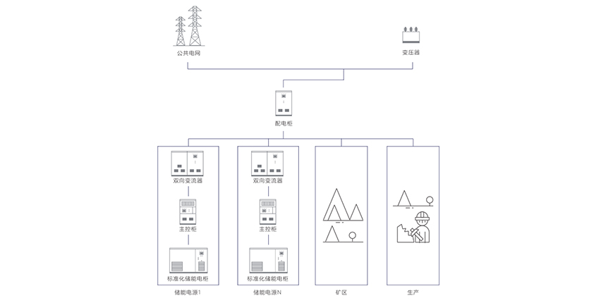 根據(jù)礦企的用電特性區(qū)分負(fù)荷種類,對(duì)重要負(fù)荷進(jìn)行配電改造,提供磷酸鐵鋰儲(chǔ)能系統(tǒng)”保安電源解決方案,實(shí)現(xiàn)大功率高倍率放電,在突然斷電等應(yīng)急場(chǎng)合安全使用,確保重要負(fù)荷的正常工作。